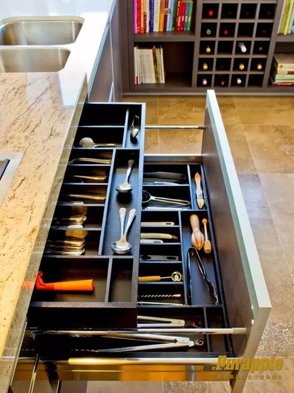 美味的佳肴離不開各式各樣的調(diào)味品,所以調(diào)味品種類一定要多,但集中的收納也是很有必要的哦。