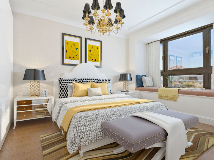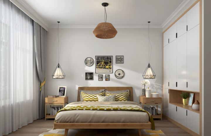 (2)臥室寬度在3.2米以內(nèi)的話建議選擇1.5米寬的雙人床,大于3,5米選擇1.8米的雙人床。