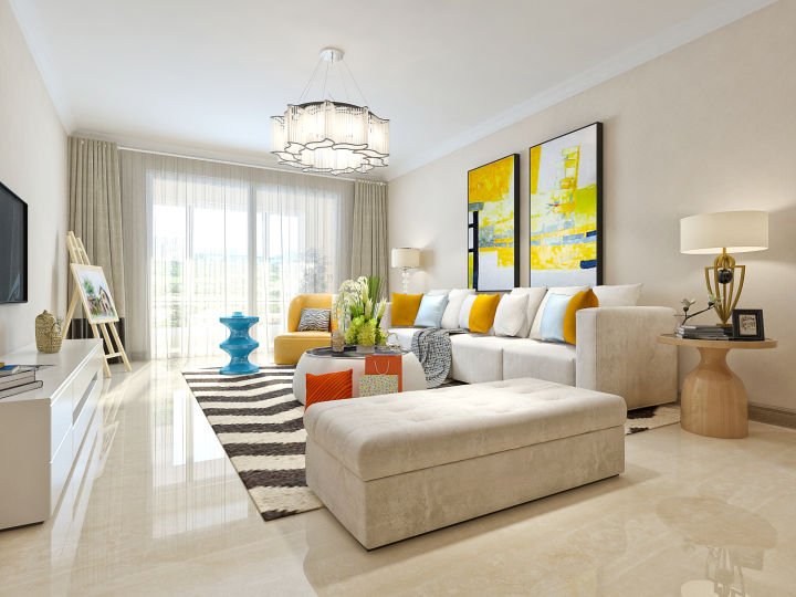 (1)室內(nèi)配色,最好只有一種主色調(diào),然后選一到兩種輔助色對比色,用來調(diào)節(jié)客廳的顏色純度和明度的變化,但是對比色的面積和種類要少,否則顯得又亂又廉價。