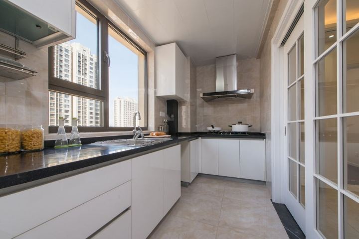 開放式廚房固然美觀,但油煙、收納及整潔性等問題是不得不面對的,不妨考慮安裝玻璃推拉門,透過玻璃看到家人和自己在一起,做飯也就沒那么無聊了,推拉門相對于平開門而言還可以減少開關(guān)門占用的空間。