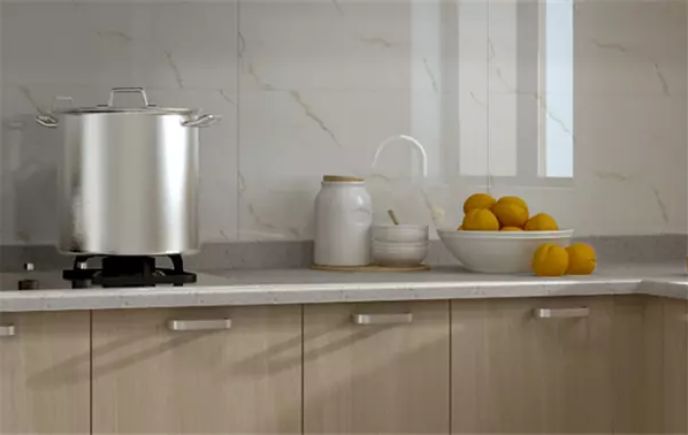廚房臺面最好使用石英石臺面,硬度高、防滲透、耐刮、耐磨并且環(huán)保無輻射,可與食物直接接觸。而人造石臺面不耐高低溫,硬度低,使用一段時間后,表面會有劃痕;大理石臺面不易做造型,容易吸油滲色,不易清洗。