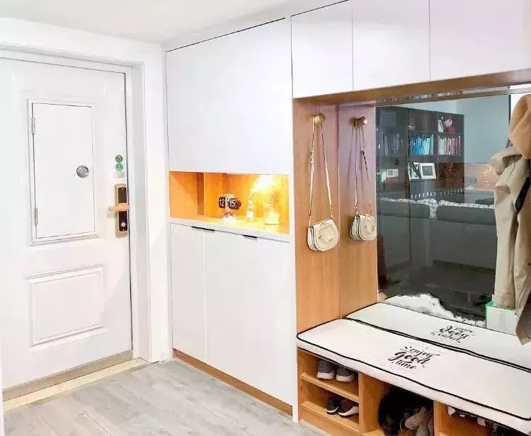 玄關是進門第一眼映入眼簾的地方,在玄關打一個玄關柜,你家50%的東西都有了存放的地方,而且還因為進門隨手放、出門隨便拿,讓生活也簡單方便得多了。小編會建議大家裝到頂或者是嵌入式的玄關柜,這樣就不用擔心柜頂落灰不好打掃了。