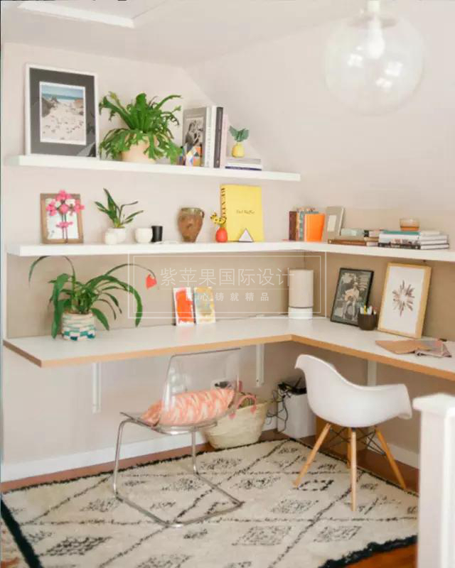 建造這樣的工作區(qū)會(huì)需要大一點(diǎn)的空間,但對(duì)比起專(zhuān)門(mén)的書(shū)房來(lái)說(shuō),整個(gè)成本真的會(huì)低很多,而且整齊利落,即是靈感當(dāng)中提到的置物展示空間,又可以玩電腦、做功課和工作,掛墻式的桌面和擱板置物架簡(jiǎn)潔而且價(jià)格親民,再配張地毯,整個(gè)位置立刻就亮眼了起來(lái)。
