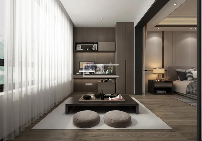 主臥的陽(yáng)臺(tái)打造成休閑區(qū),用于品茗談心,悠然自得,為忙碌的生活增添樂(lè)趣,使生活更精致更有質(zhì)感。