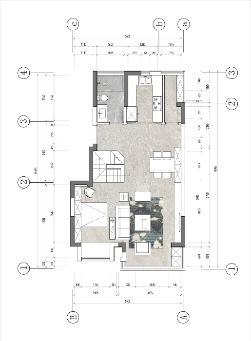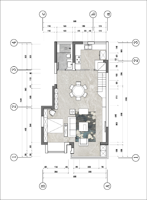 一樓陽臺(tái)打通,南面都有做這個(gè)多功能區(qū),樓梯改在東面,直跑樓梯節(jié)省了大量的空間。挑空部分進(jìn)行現(xiàn)澆,擴(kuò)大了使用面積。廚房擴(kuò)大,解決了廚房體量小的問題。