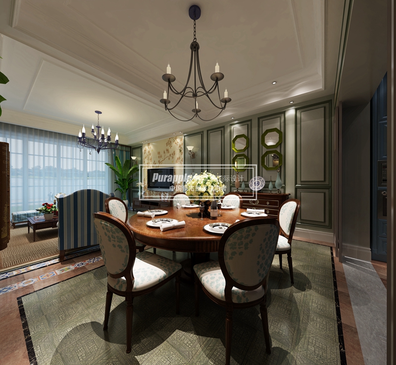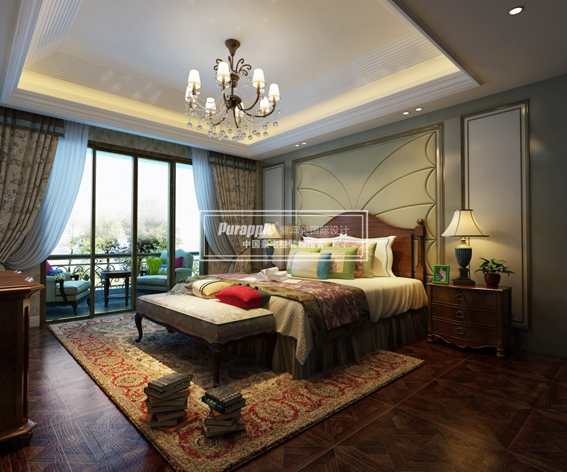因?yàn)槊朗郊揖语L(fēng)格的這些元素也正好迎合了時(shí)下的文化資產(chǎn)者對(duì)生活方式的需求,所以:有文化感、有貴氣感,還不能缺乏自在感與情調(diào)感。從圖中臥室中窗簾,背景墻,沙發(fā)以及地毯又加上實(shí)木的地板總體的顏色搭配與色調(diào)全全體現(xiàn)了美式風(fēng)格的一個(gè)文化與貴氣。當(dāng)然再加上燈具以及一些家居的呼應(yīng),或許你已經(jīng)覺得自己置身在美國家中。