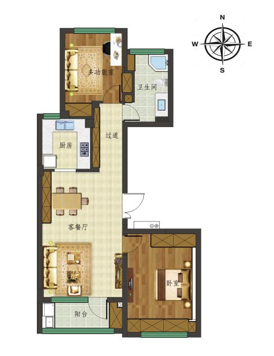戶型效果圖:這個(gè)戶型大家可以看出來(lái)并不是很多,確實(shí)它只有2300px,但是相信大家可以從戶型圖中看出設(shè)計(jì)師還是將很多東西設(shè)計(jì)的很微妙。那么我們?cè)賮?lái)看看設(shè)計(jì)效果圖吧,從里面你可以發(fā)現(xiàn)更多很棒的設(shè)計(jì)感和微妙元素在里面。