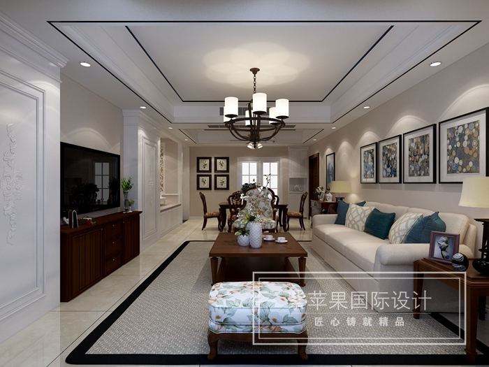 客餐廳:在甲方要求必須將現(xiàn)有家具使用的情況下,本案設(shè)計(jì)師巧妙運(yùn)用多層次吊頂把客餐廳空間區(qū)分明確,墻面大面積采用乳膠漆調(diào)色淡化過(guò)渡深色家具,輔以大面積白色底色,用青檸色流行色點(diǎn)綴加入流行的淡雅氣息,在電視背景巧妙的運(yùn)用了西式對(duì)稱造型隱藏了主臥房門(mén),充滿了復(fù)古雅致。
