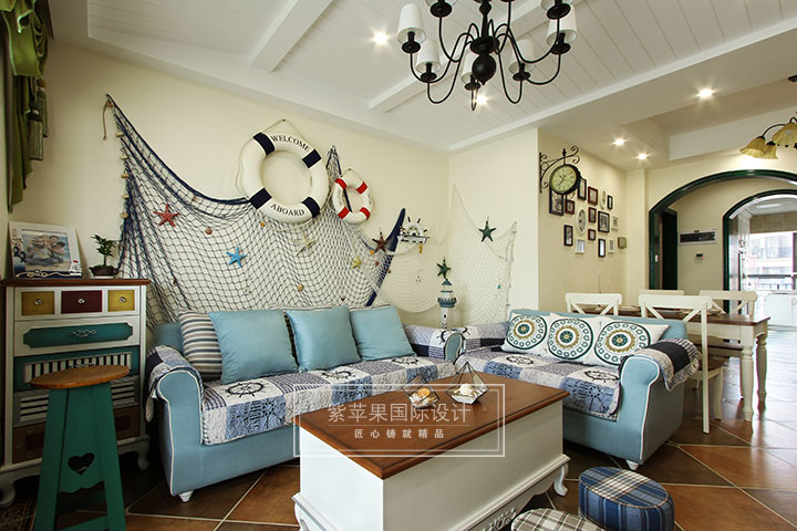 沙發(fā)旁的邊柜,茶幾,電視柜,和藍(lán)色地中海氣質(zhì)是完全不同的。