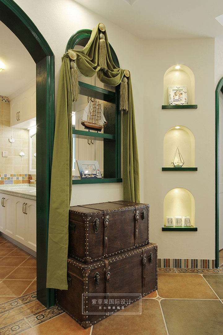 被海邊的元素包圍,窩在沙發(fā)發(fā)呆,享受放松的感覺。地中海風(fēng)格,造型上,廣泛運(yùn)用拱門與半拱門,給人一種曲線美,又給人延伸般的透視感。家具選配上,通過(guò)擦漆做舊的處理方式,搭配貝殼、鵝卵石等海洋元素,表現(xiàn)出自然清新的生活氛圍。